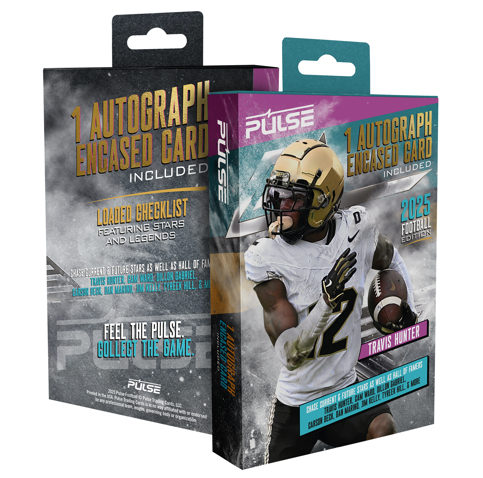 Announcing 2025 Pulse Retail Football! Each box includes one autographed encased card from legends in football and future stars of the game. This loaded checklist includes Travis Hunter, Cam Ward, Tyreek Hill, Dan Marino and more!